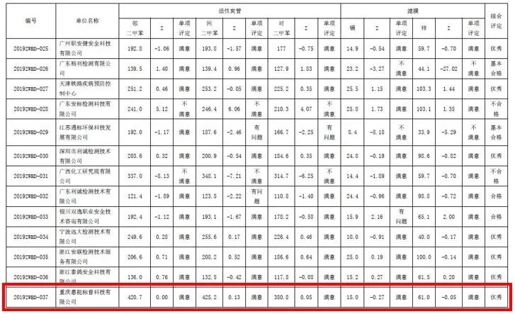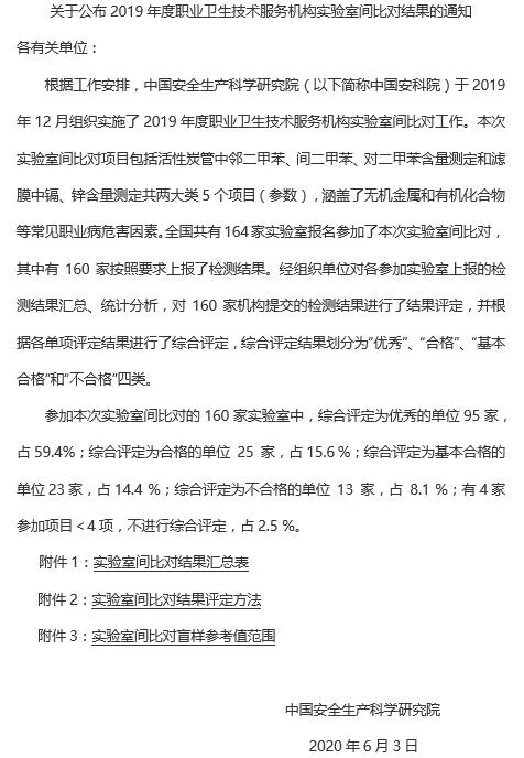 2019年度全國職業(yè)衛(wèi)生技術(shù)服務(wù)機(jī)構(gòu)實(shí)驗(yàn)室比對結(jié)果