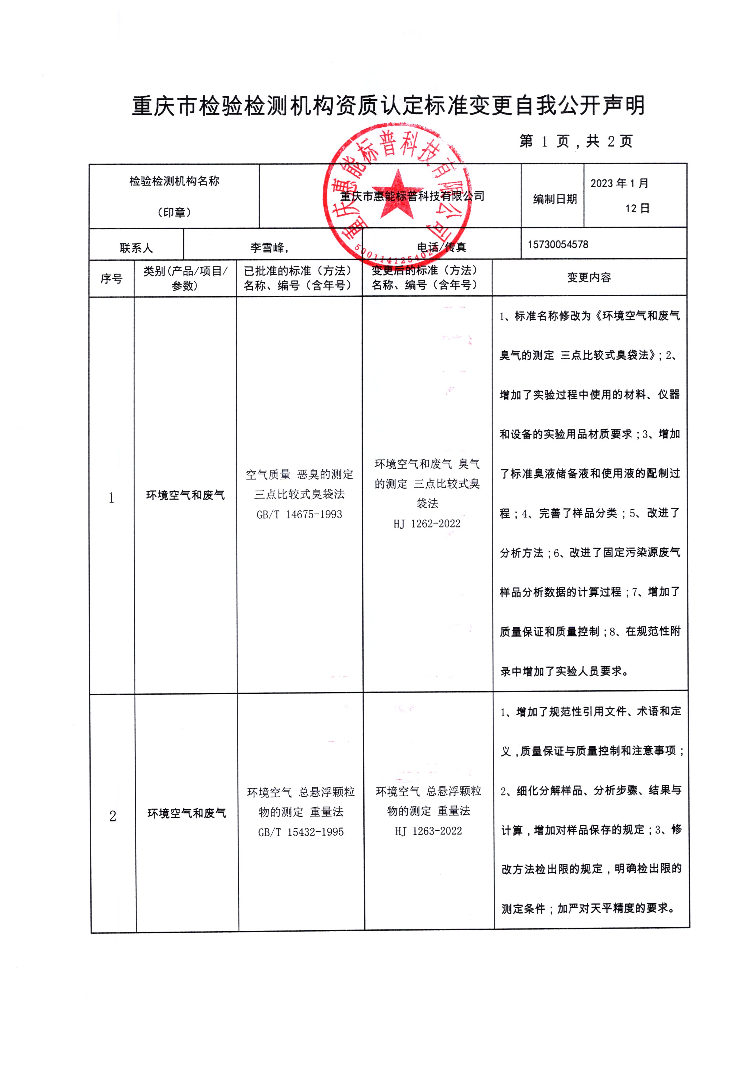 重慶市檢驗檢測機構資質認定標準變更自我公...