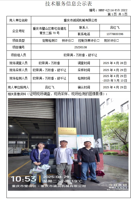 重慶市誠潤機械有限公司定期檢測項目公示