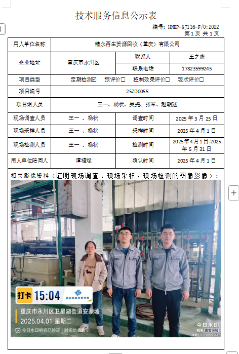 重慶和暢包裝有限公司定期檢測(cè)項(xiàng)目公示...