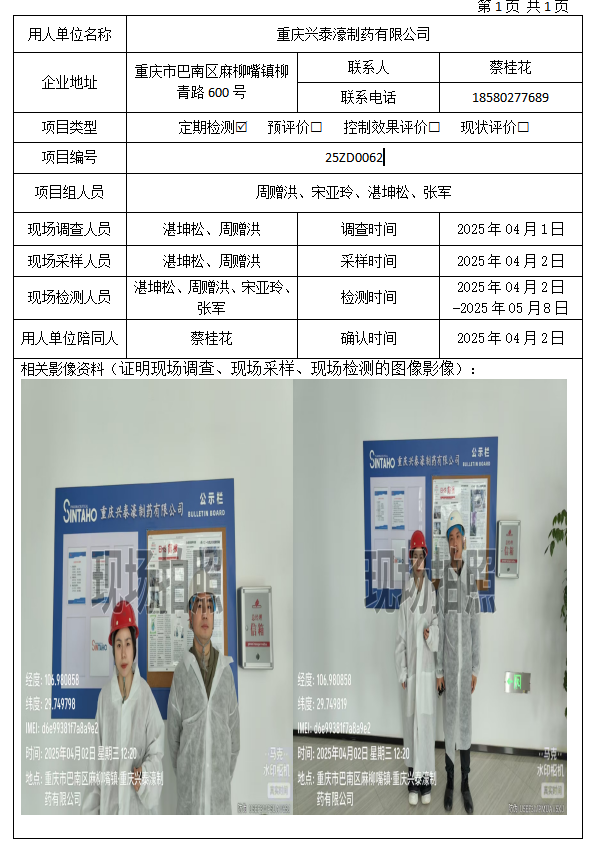 重慶興泰濠制藥有限公司定期檢測項目公示