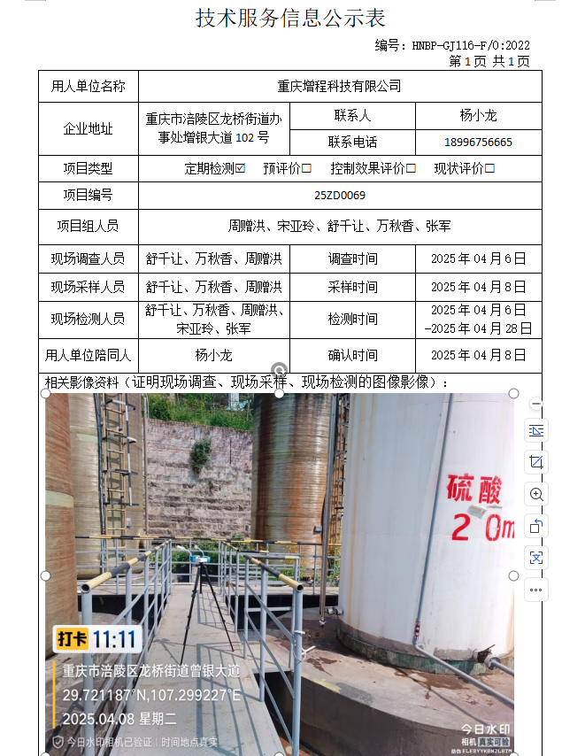 重慶金珈玉建筑工程有限公司定期檢測項目公...