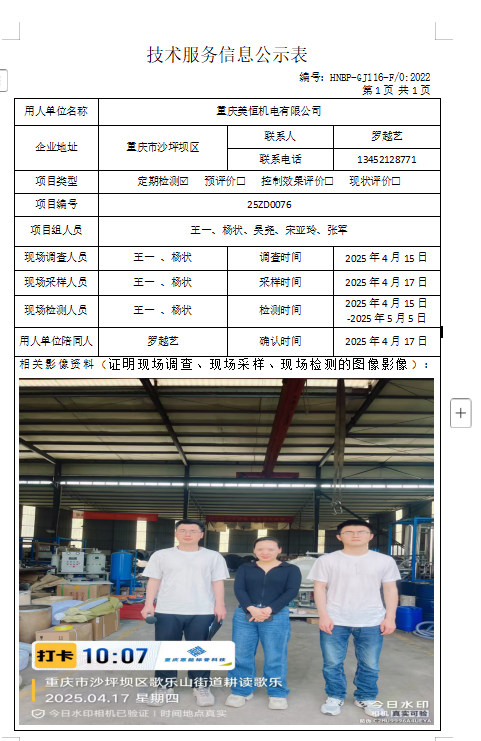 職業(yè)衛(wèi)生評(píng)價(jià)項(xiàng)目公示