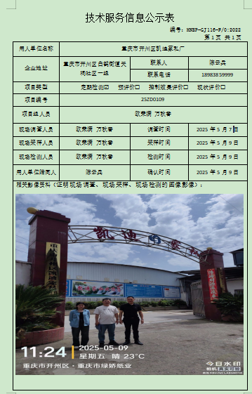 重慶市開州區凱迪家私廠定期檢測項目公示