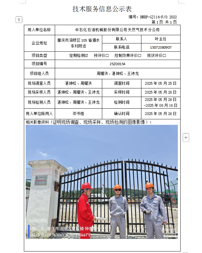 中石化石油機械股份有限公司天然氣技術服務分公司定期檢測項目公示