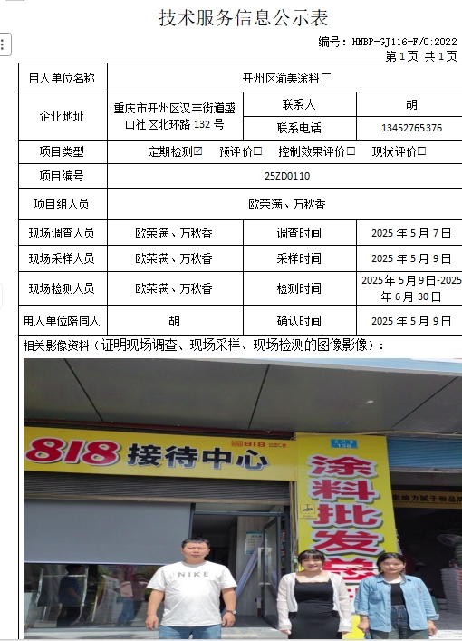 重慶中偉欣誠科技有限公司定期檢測項目公示...