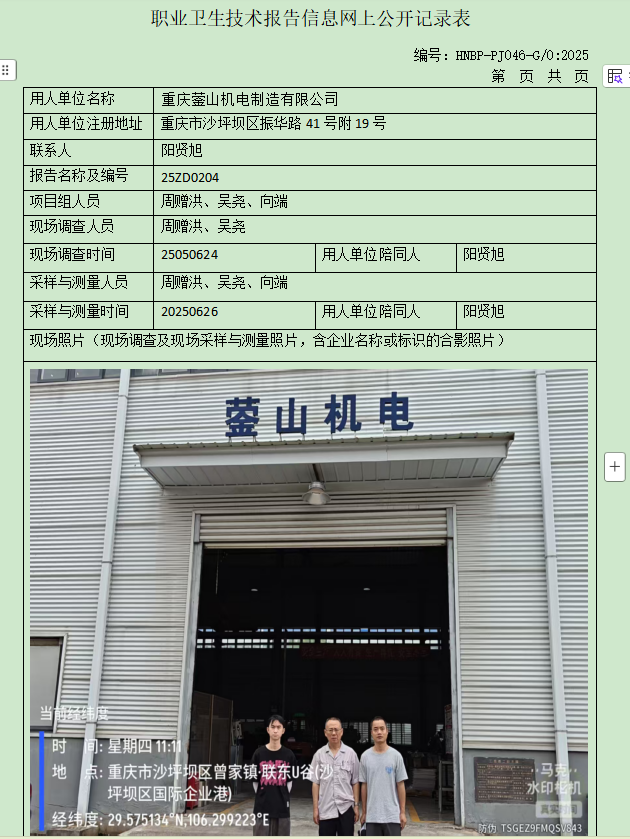 重慶鎣山機電制造有限公司定期檢測項目公示