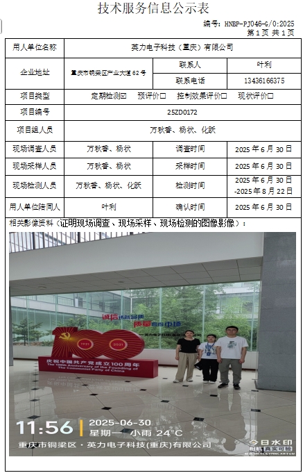 英力電子科技(重慶)有限公司定期檢測項(xiàng)目公示