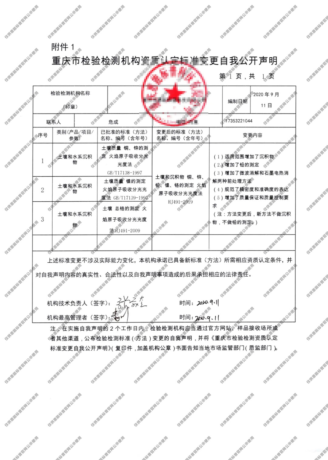 重慶市檢驗檢測機構(gòu)資質(zhì)認定標準變更自我公開聲明